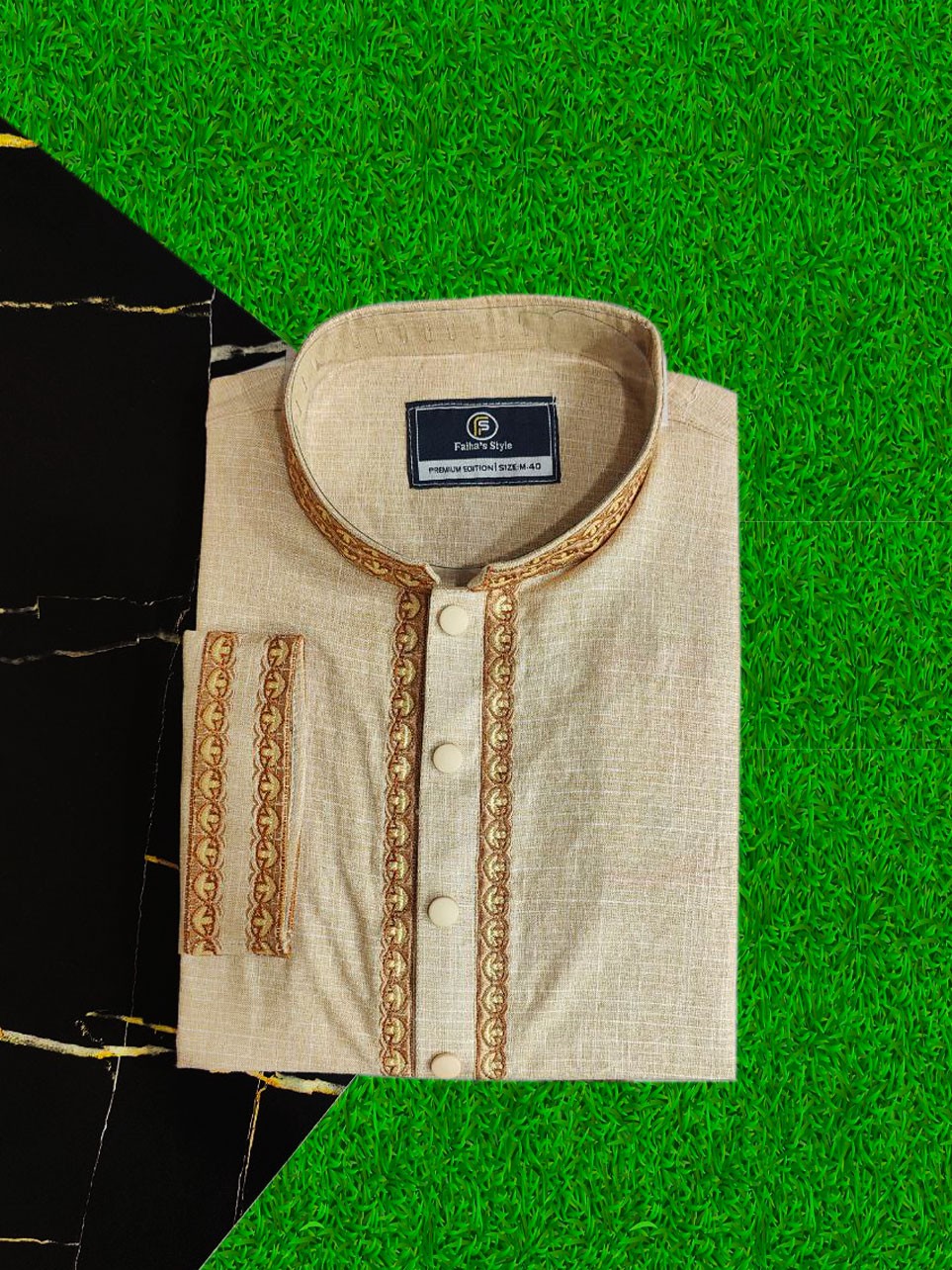 Sleeve: Full Sleeve with Matching Embroidery Cuff